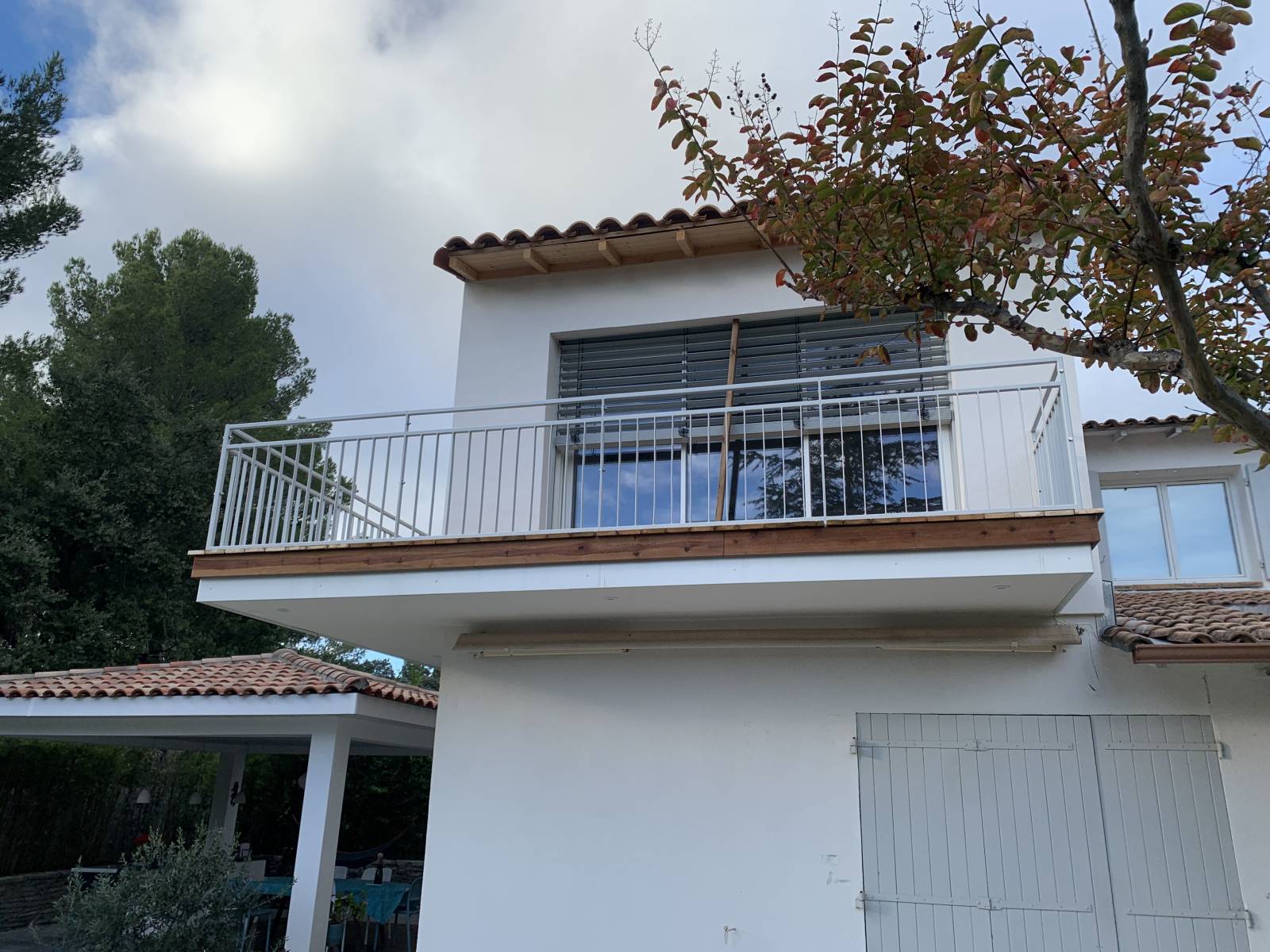 Pour assurer une intégration harmonieuse avec l’existant, nos clients ont opté pour une toiture à deux pentes couverte de tuiles canal, ainsi qu’un enduit de façade blanc similaire à celui de la maison d’origine. Ce choix architectural garantit une cohérence esthétique et une parfaite adaptation au cadre environnant.
