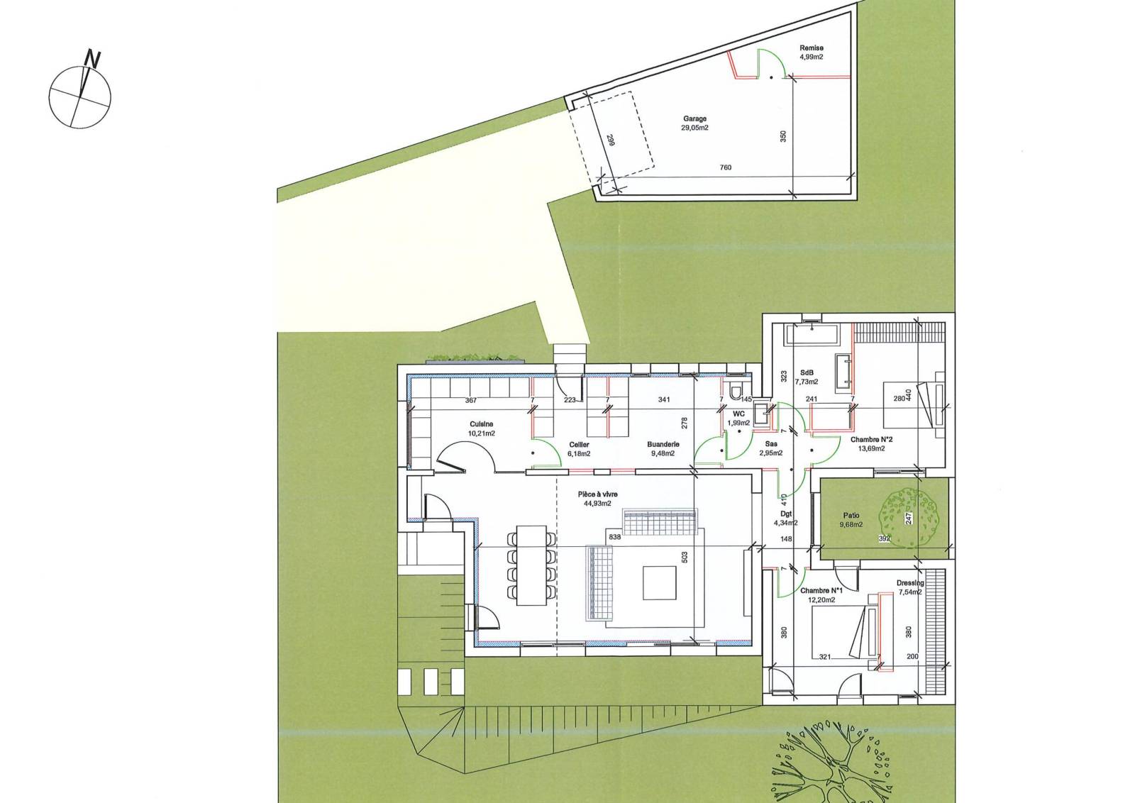 Ce chantier comprend la création d’une extension en ossature bois et la rénovation d’un garage existant. Voici les principaux aspects du projet :